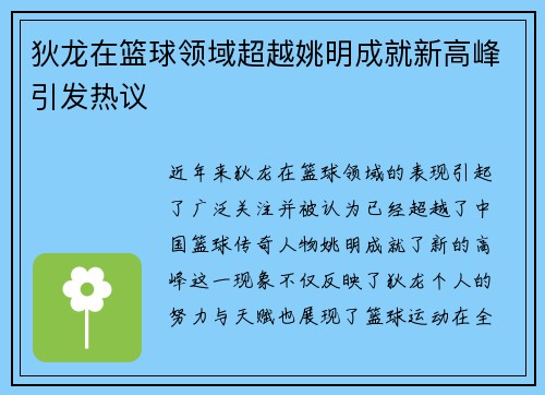 在这篇文章中,我们将探讨姚明与超级英雄们携手重返篮球场的美漫之旅,展现力量与梦想的结合。姚明,这位中国篮球传奇,不仅是体育界的巨星,更是无数年轻人的榜样。他与各类超级英雄的相遇,不仅增添了篮球比赛的趣味性,也让人们看到了团结、奋斗和梦想的重要性。我们将从四个方面分析这一旅程:首先,姚明如何成为篮球场上的超级英雄;其次,他与超级英雄之间的互动及其象征意义;再者,这一旅程对青少年的影响;最后,展望未来...